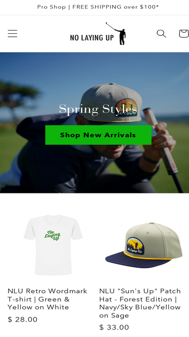 86%No Laying Up is a community of educated fans dedicated to discussing, playing, following and laughing about golf at all levels. Through our website, message board, podcast, videos, and golf apparel, No Laying Up's provide a relatable and informative perspective on golf for fans all over the world.