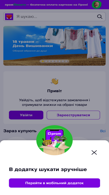 Prom – найбільший маркетплейс України, де продаються понад 100 млн товарів від десятків тисяч підприємців з усієї країни. На Промі можна знайти все, що потрібно, за найкращою ціною: від зубної щітки до культиватора для саду та городу.