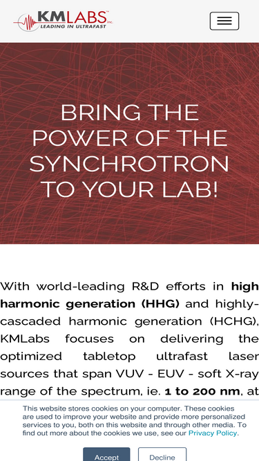 92%KMLabs core technology for tabletop scale VUV-EUV-SXR laser sources.