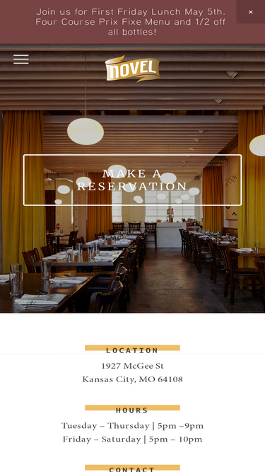 80%Located in the East Crossroads Art District, Novel offers contemporary, American cuisine. Coupled with excellent service, each diner will receive an exemplary experience. From utilizing local ingredients to the welcoming staff to the warm wood tones and colorful mosaic, we create a truly unique expe