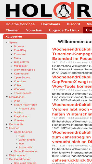 100%holarse zeigt wie man unter linux spielt, linuxspiele zum laufen bekommt, was das neuste zum thema spielen unter linux ist und bietet eine community für alles was linuxspieler haben wollen. ihr findet bei uns mumble, dedicated server mit den neusten spielen und vieles mehr.