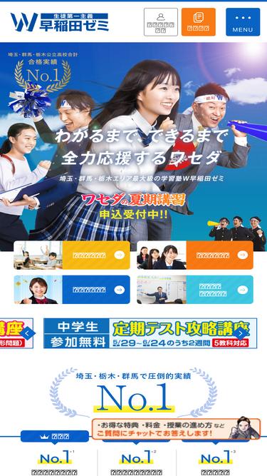 100%【1週間無料体験受付中】W早稲田ゼミの「わかる・楽しい」授業を体感しませんか?正社員プロ講師によるライブ授業をたっぷり1週間お試しいただけます。無理な勧誘やセールスは一切ありません。群馬・栃木・埼玉で生徒数No.1の指導を、ぜひお近くの校舎で。