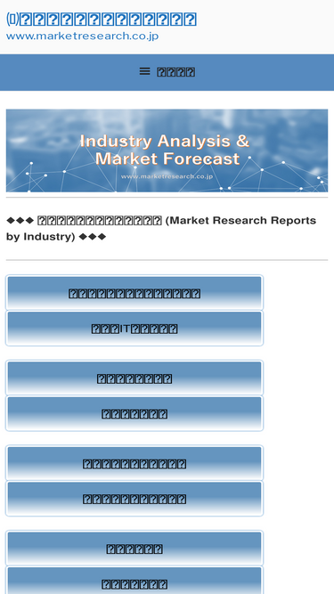 86%市場調査レポート・産業調査報告書・委託調査サービスのマーケットリサーチセンターウェブサイトです。世界の調査会社・出版社が発行した調査レポートを日本で取り扱っております。市場調査レポート購入・マーケティング調査を実施するなら、実績と信頼のマーケットリサーチセンターにおまかせください。