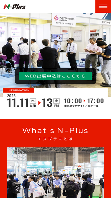 100%N-PLUS2025は、製品の高機能化、ものづくりの高付加価値化を発信する複合展です。12の展示会で構成され、原材料メーカーや機械・装置メーカーおよび優れた技術力を持った成形・加工メーカーが、自動車、電子・精密機器、半導体、航空・宇宙、医療機器等の各種業界との商談・技術交流をもとめて出展します