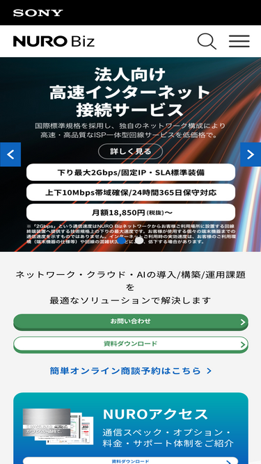 81%ビジネスの未来を、ソニーと創る。「NURO Biz(ニューロ・ビズ)」は法人向けインターネット回線をはじめとする、クラウド時代のICTソリューションサービスです。