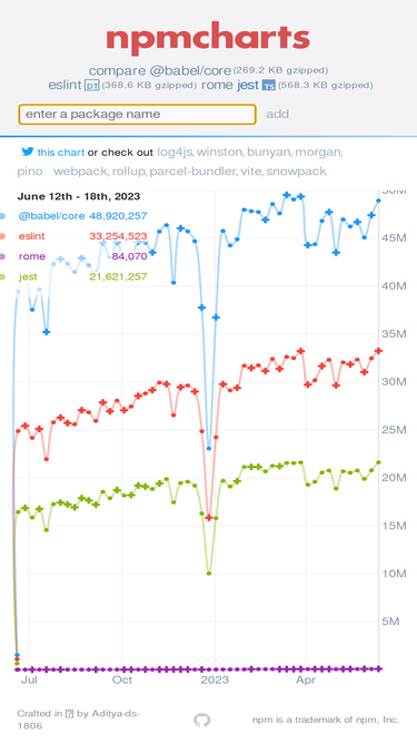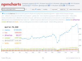 compare npm package download counts over time to spot trends and see which to use and which to avoid.