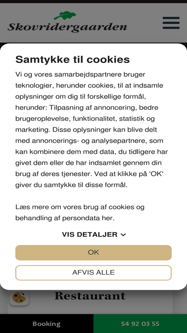Skovridergaarden er et idyllisk hotel i Nakskov, som er kendt for sit gode køkken, med friske råvarer af 1. kvalitet. Ring eller skriv gerne.
