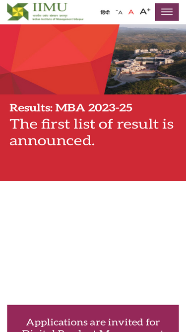 100%Indian Institute of Management Udaipur Indian Institute of Management Udaipur, Balicha, Udaipur - 313001, Rajasthan, India +91 294-2477100 info@iimu.ac.in Monday - Friday: 09:00 - 17:30 hrs For Admissions: +91 7230005651 Important Contacts Designation Name Email Director Prof. Ashok