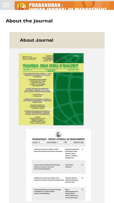 29%prabandhan : indian journal of management is a leading finance journal that enjoys wide readership of researchers, academicians, scholars and professionals. and decision making, technology and operations management, strategic decision making