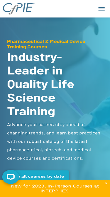 96%cfpie provides pharmaceutical training courses and certifications in compliance and regulation for the biotech, medical device, and skin/cosmetics industries.