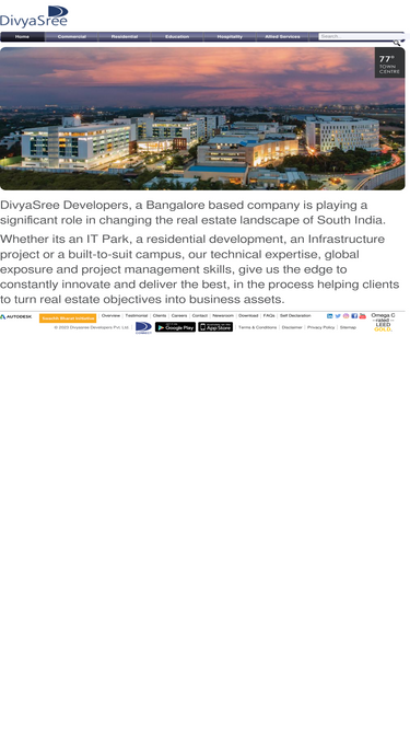 100%discover premium real estate solutions by divyasree. excellence in commercial, residential, and hospitality spaces.