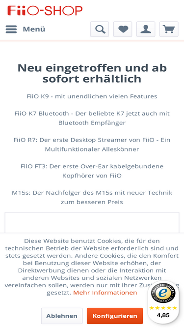 100%FiiO KA1 Ein kompakter und portabler Digital-Analog-Wandler Der FiiO KA1 dessen Herzstück der ESS DAC ES9281AC Pro ist, ist in zwei Varianten verfügbar. Zum einen in der klassischen USB-C Konfiguration und auch in der Lightning Variante für die Apple Nutzer. Features: - RBG Status Indikator zum Anzeigen der abgespielten Auflösung - MQA Rendering Unterstützung - Unterstützt bis zu 32 Bit/384kHz - Unterstützt DSD256 - Aluminiumgehäuse - Versilbertes monokristallines Kupferkabel für störungsfreie Datenübertragung Massives Potential trotz kompakter Abmessungen Mit nur 40x15x8mm Gehäuseabmessung ist der FiiO KA1 extrem klein und dennoch erstaunlich gut ausgestattet. Der High Quality DAC von ESS und FiiO´s allseits bekannter Enthusiasmus auch schon im preislichen Einstieg eine absolut wertige Qualität und unschlagbaren Klang zu liefern. Lässt das Herz höherschlagen Der im FiiO KA1 verbaute ESS9281AC Pro von ESS Chip vereint das USB Audio interface, den Digital-Analog-Wandler und die analoge Audioverstärkung in einer Verpackung. Nur so lassen sich die minimalen Abmessungen des KA1 realisieren. Die Mehrlagige und vergoldeten Leiterbahnplatte sorgt am Ende für eine niedrigen Crosstalk, eine hohe Effektivität und eine niedrige Energieaufnahme. Dadurch wird der FiiO KA1 zum idealen Spielpartner für Ihre Smarthone. High End Dekodierung von Musikdaten Der FiiO KA1 unterstützt bis zu 32Bit und 384kHz sowie DSD256. Damit hören Sie sogar die kleinsten Details Ihrer Aufnahmen. (DoP Modus bis zu DSD128 / Native bis zu DSD256) Grenzenlos Musik dank MQA Dank der MQA Rendering Zertifizierung kann der FiiO KA1 MQA Core Signal entschlüsseln. Diese werden beispielsweise von den üblichen Streaming Services wie Tidal oder anderen genutzt. Sehen Sie was Sie hören Die RGB Status LED zeigt das derzeit abgespielte Audioformat an - Blau = 48kHz oder niedriger - Gelb = Über 48kHz - Grün = DSD - Purple = MQA Rendering