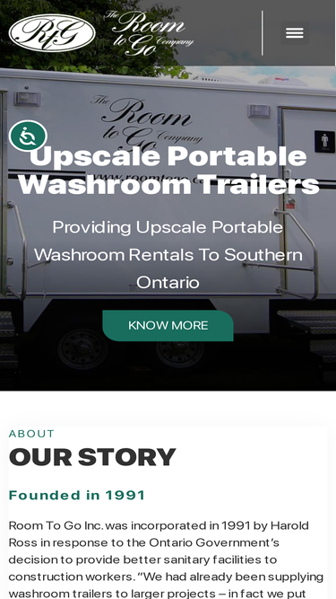 87%Upscale Portable Washroom Trailers Providing Upscale Portable Washroom Rentals to Southern Ontario KNOW MORE about our story Founded in 1991 Room To Go Inc. was incorporated in 1991 by Harold Ross in response to the Ontario Government’s decision to provide better sanitary facilities to construction workers. “We had already been supplying washroom trailers to larger […]