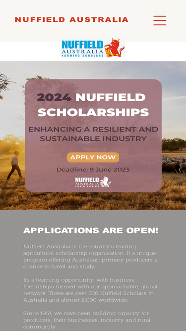 Nuffield Australia awards scholarships each year to farmers in Australia. The objective is to increase practical farming knowledge and management skills and techniques generally.