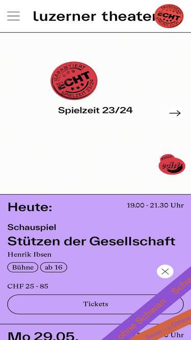 100%4 Sparten in Oper, Schauspiel, Tanz und Figurentheater, 20 Premieren, 1 Gastspiel und 1 Wiederaufnahme, neue Gesichter und alte Bekannte, 200 Vorstellungstermine und ein umfassendes Rahmenprogramm. Das Luzerner Theater wird jährlich von rund 100'000 Zusch