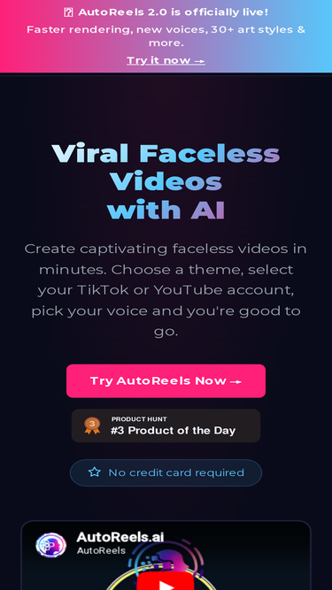 Create and automate faceless videos effortlessly with AutoShorts.ai. Our AI-powered platform generates and posts fresh content daily to grow your TikTok and YouTube channels. Start your faceless video journey today!
