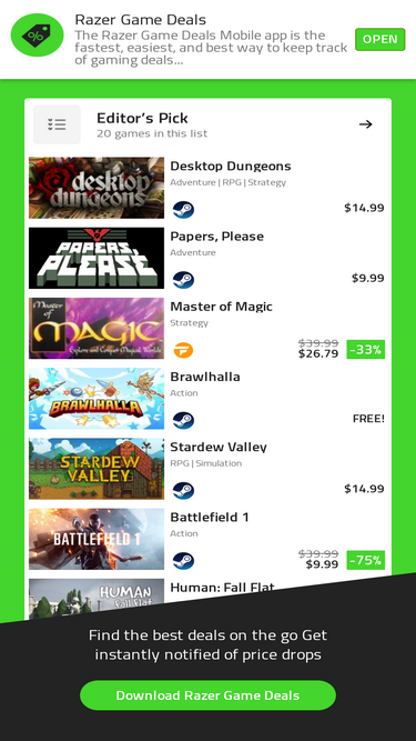 The other five competitors in the top 10 list are skidrowreloadedcrack.com, letgames.org, bajarjuegospcgratis.com, level-devil.io, and deals.razer.com.