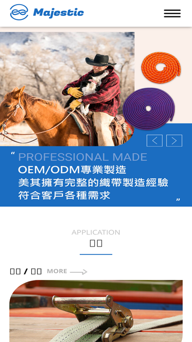 79%美其織帶創立於西元1975年,擁有40年以上各類織帶的製作經驗。從牽紗、織造到染整加工,皆有可令人信服的技術,提供客戶完整的解決方案。可依據不同的纖維材質客製各種類型、功能、拉力、顏色的織帶。能用於工業拖吊帶、寵物拉繩、安全帶、鬆緊帶等…。