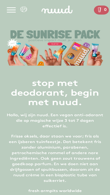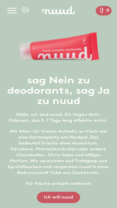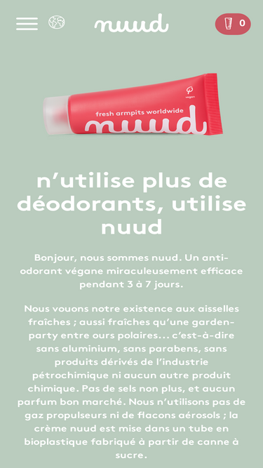 80%Stoppen Sie die Verwendung von Deodorant, und beginnen Sie mit der Verwendung von nuud: dem natürlichen Anti-Odorant in einem Tube aus biokunststoffhaltigem Zuckerrohr.