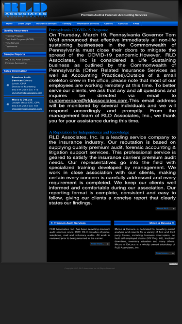 96%rld associates, inc. is a leading service company to the insurance industry. our reputation is based on supplying quality premium audit and forensic accounting services.