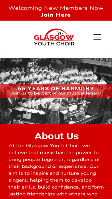 89%Glasgow Youth Choir is open to young people from P1 up to S6 and beyond, and welcomes singers from complete beginners to experienced performers. We meet regularly for rehearsals, workshops, and performances, and our repertoire includes a wide range of styles and genres.