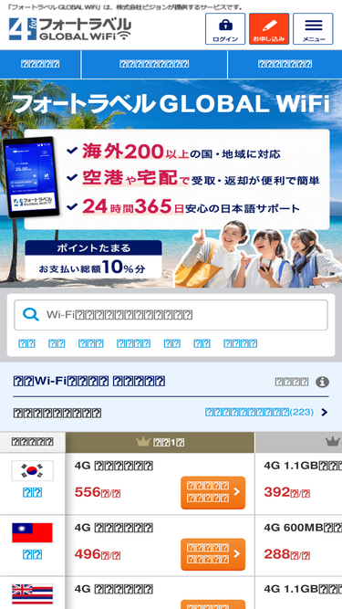 98%海外wifiレンタル【グローバルwifi】利用者数7年連続no.1!5g・4g・無制限・日本語サポート付きで海外でも快適インターネット。国内空港で即日レンタル・受取可能。海外旅行・出張・留学なら【グローバルwifi】