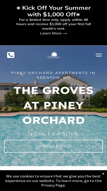 93%Envision yourself at Groves at Piney Orchard. Explore our gallery showcasing a range of 1, 2, and 3 bedroom layouts alongside our community amenities!