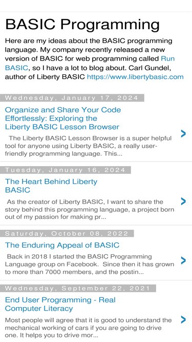 88%here are my ideas about the basic programming language. my company recently released a new version of basic for web programming called run basic, so i have a lot to blog about. carl gundel, author of liberty basic https://www.libertybasic.com