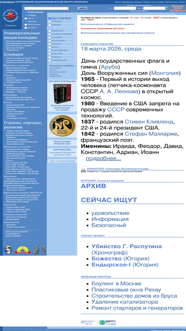 крупнейший энциклопедический ресурс рунета: полные электронные версии важнейших энциклопедий, словарей и справочников, изданных в россии за последние сто лет, в том числе большая советская энциклопедия. полнотекстовый поиск и поиск по иллюстрациям. библиотека бизнес-образование. ежедневно подборки научно-популярных статей из журналов.