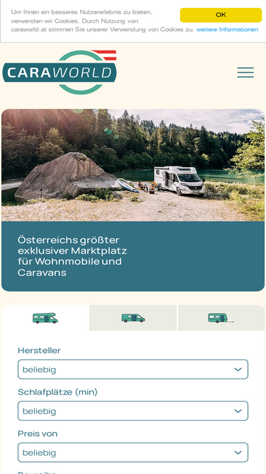 98%wohnmobile und wohnwagen neu und gebraucht kaufen bei caraworld.at – österreichs größtem exklusiven markt für reisemobile und caravans.
