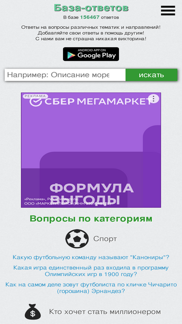 85%большая база ответов на различные вопросы викторин, кроссвордов, интеллектуальных игр и других вопросов, онлайн кроссворды, онлайн викторина
