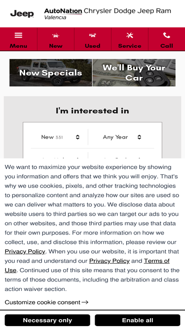92%autonation chrysler dodge jeep ram valencia is your local car dealership in valencia, ca. view our new and used inventory or schedule service!