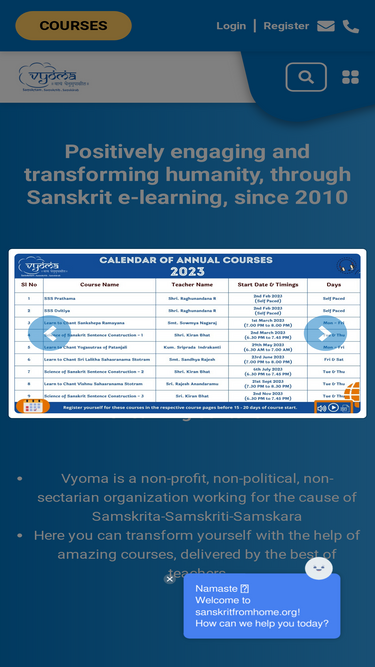 Free and Paid online courses to Learn Sanskrit and hindu/vedanta scriptures from anywhere, through english, hindi, telugu, kannad, tamil and other regional languages.
