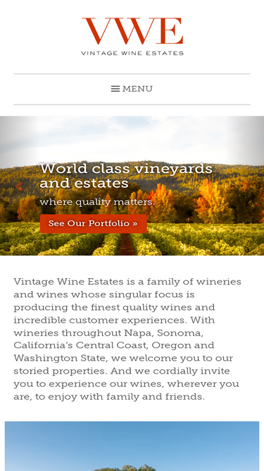 98%vintage wine estates is a family of independent wineries and producers whose singular focus is on producing the finest quality wines and incredible customer experiences. with wineries throughout napa, sonoma, oregon and washington state, we welcome you to our storied properties and look forward to delighting you with our wines, our hospitality and our service.