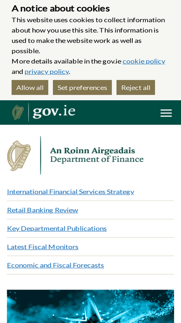 92%The Department of Finance's mission is to lead in the achievement of the government’s economic, fiscal and financial policy goals, having regard to the goals set out in the Programme for Government - Our Shared Future.