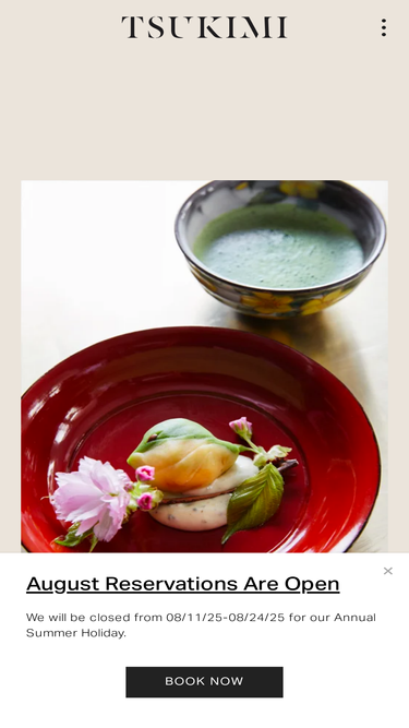 Located in the heart of the East Village, Tsukimi offers a modern take on kaiseki, a multi-course Japanese dinner. The name Tsukimi translates to moon viewing and refers to the mid-autumn harvest festival honoring the moon at its fullest and brightest. While we partake in the harvest of the earth, w