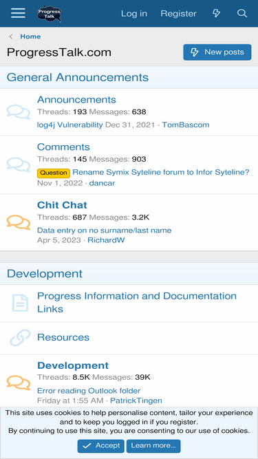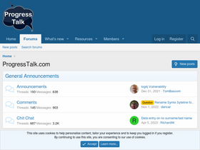 100%ProgressTalk.com, the fastest growing Progress user's group, offers a web-based discussion forum on over 50 topics relating to using Progress.