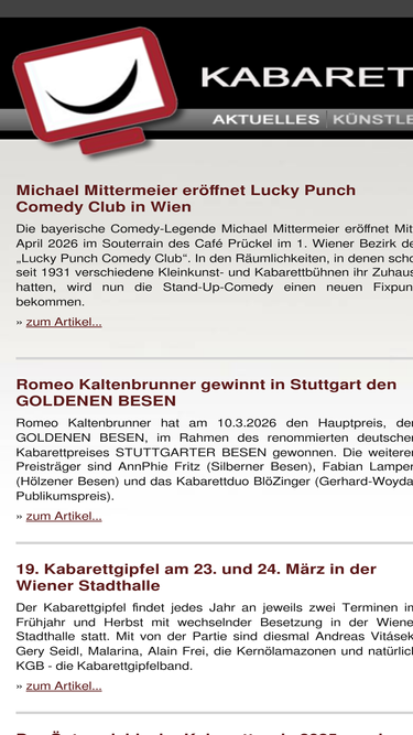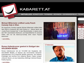 73%KABARETT.at ist ihre erste Anlaufstelle für Kabarett, Kleinkunst und Comedy in Österreich. Hier finden Sie alle Termine, News, Interviews, Ticketinfos, Kontaktinformationen und Spielorte, sowie laufend Gewinnspiele!