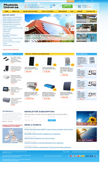 97%affordable solar panels and solar equipment in the uk and delivered worldwide. solar panels - from 20w to 490w, off grid and on grid packages. mppt charge controllers, inverters, batteries and all accessories.