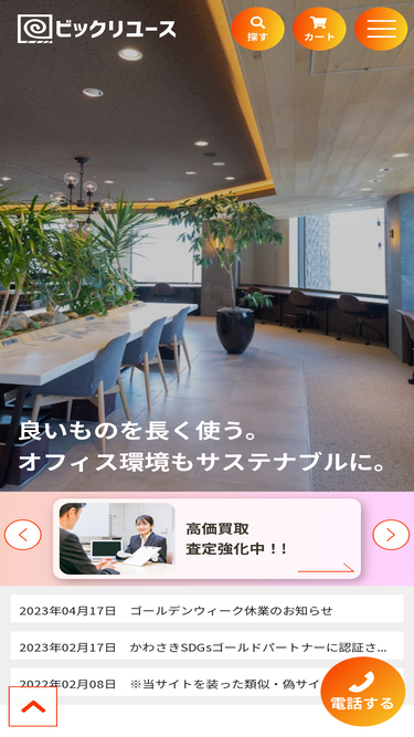 82%ビックリユースをご利用頂きありがとうございます。新品・中古オフィス家具の販売はもちろん、不用品の買取廃棄のご相談も一括対応。コスト削減にご協力致します