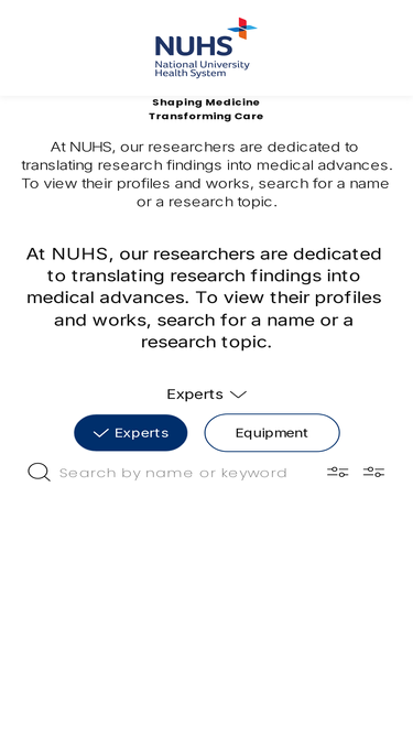 84%at nuhs, our researchers are dedicated to translating research findings into medical advances. to view their profiles and browse their works, search for a name or research topic.