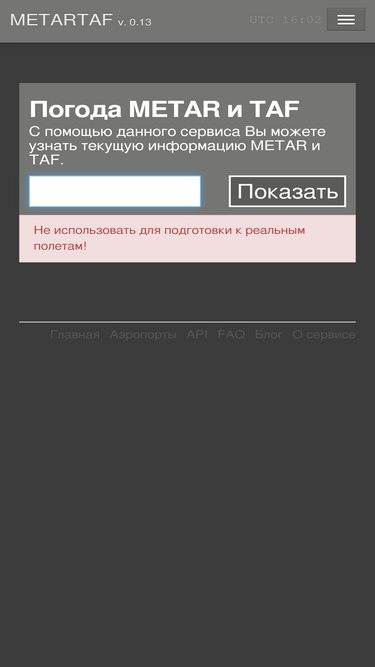 84%Meteorological Aerodrome Reports (METAR), Terminal Area Forecasts (TAF), SIGMET and Notices to Airmen (NOTAM) of all airports in the world. Decoded and visual.