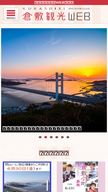 92%岡山県倉敷市の観光公式サイト。倉敷市定番の観光スポットやモデルコースをはじめ、観光地のグルメ、お土産、宿泊施設等の観光情報を紹介しています。