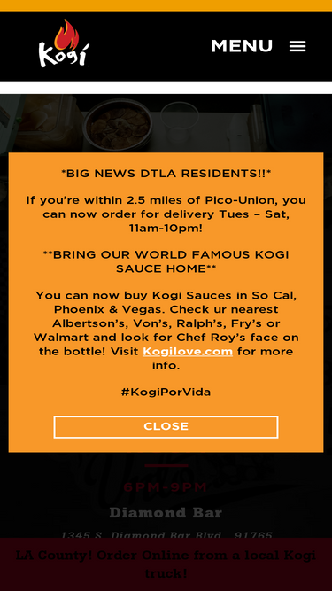 100%Downloads: Catering Menus and Pricing Catering F.A.Q. SECURING THE KOGI® TRUCK Complete the Catering Request Form to get started. Event is only confirmed
