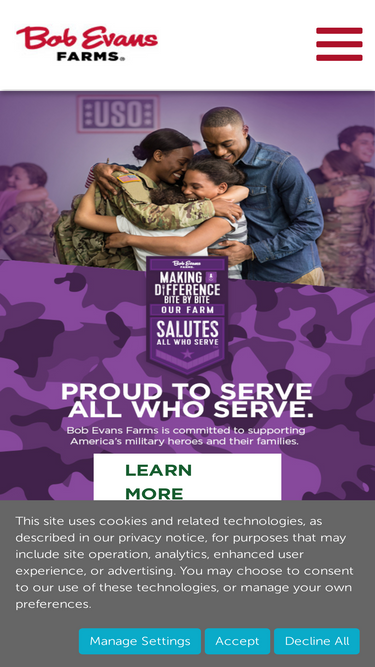 76%For more than 70 years, Bob Evans Farms has been delivering farm-fresh goodness. Learn about our farm and our history.
