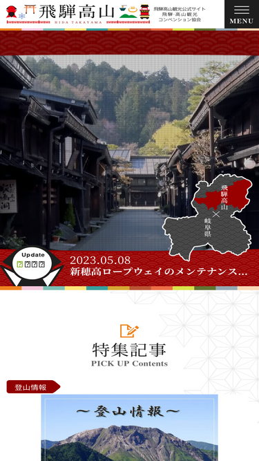 98%岐阜県高山市の観光公式サイト。古い町並での食べ歩き、新穂高ロープウェイや奥飛騨温泉郷、アニメ「氷菓」の聖地巡礼、飛騨牛や高山ラーメンなどのグルメ、さるぼぼ作りなどの体験、宿泊情報まで情報満載!定番モデルコースから穴場まで、心に残る旅をサポート!