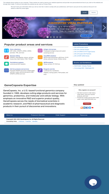 100%GeneCopoeia offers a large collection of full length ORF cDNA clones, recombinant proteins, RNAi products, and other life sciences tools and products.