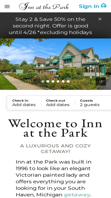 83%Stay steps from Lake Michigan and downtown South Haven at Inn at the Park. Walk to beaches, shops, and dining for the perfect romantic or relaxing getaway.