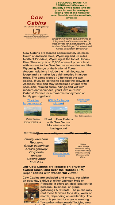 secluded mountain log cabins for rent on 2,000 acres of privately owned ranch land near jackson hole, wyoming! by day, week or month!