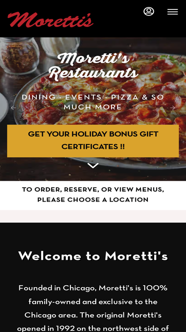 74%Moretti's Restaurants, offering Chicago's best thin crust & deep dish pizza, features original family recipes throughout our 12 locations in the Chicagoland area. Known for our classic thin crust & Chicago-style deep dish pizza, enjoy a tradition of authentic pizza and refreshing drinks at Moretti's. Guests can enjoy over 80 Italian & American creations, including vegan & gluten-free options.